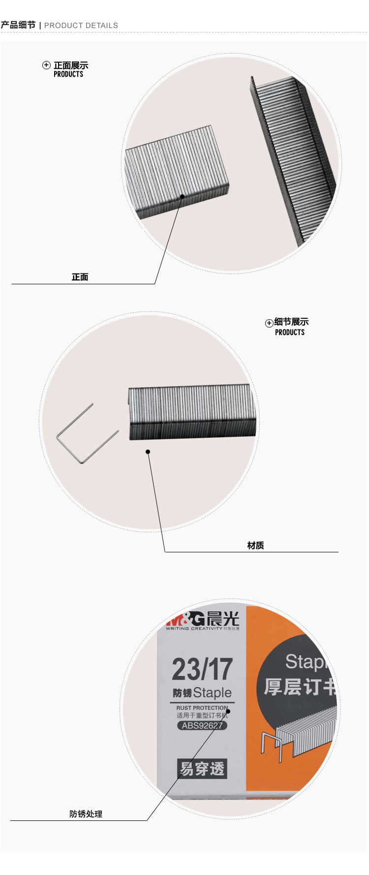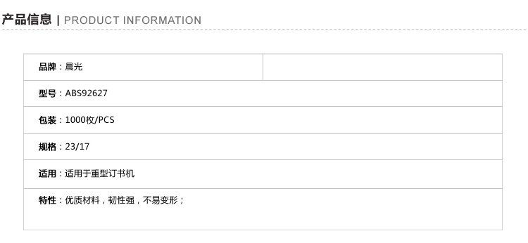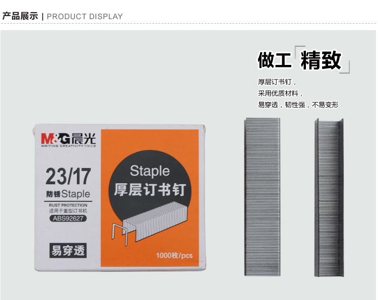 商品名称:晨光23/17*5盒 厚层订书钉ABS92627
