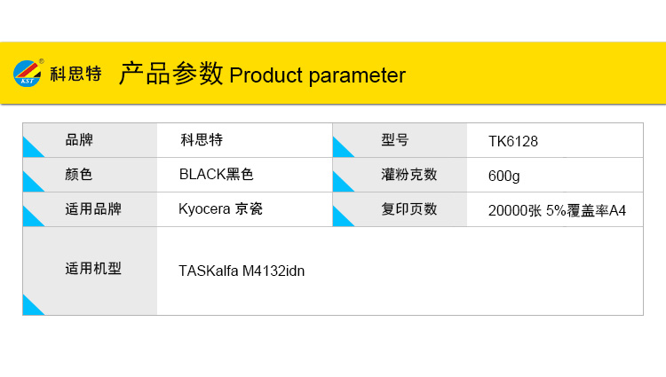 商品名称:科思特 TK-6128(带芯片) 粉盒 适用京瓷TASKalfa M4132idn 黑色