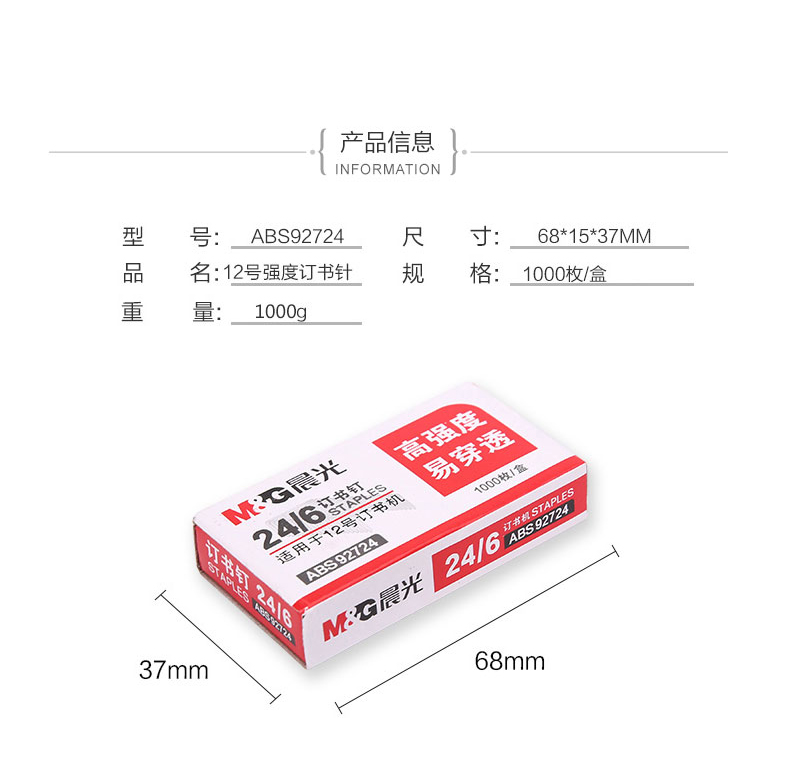 商品名称:晨光12#*10盒高强度订书钉ABS92724