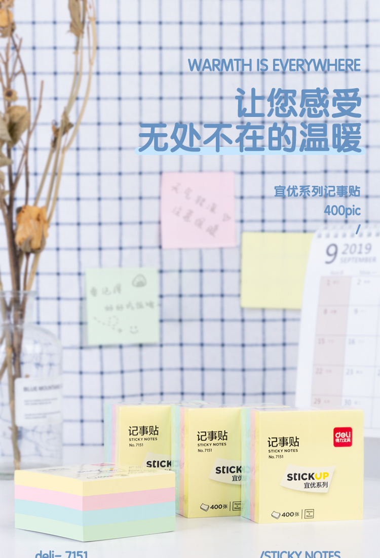 得力7151便签纸 彩色便条 记事贴 76*76mm 400张
