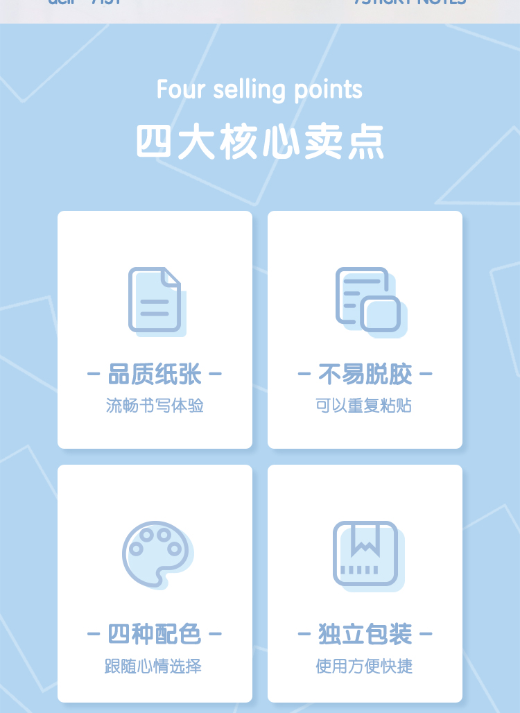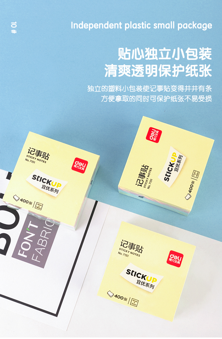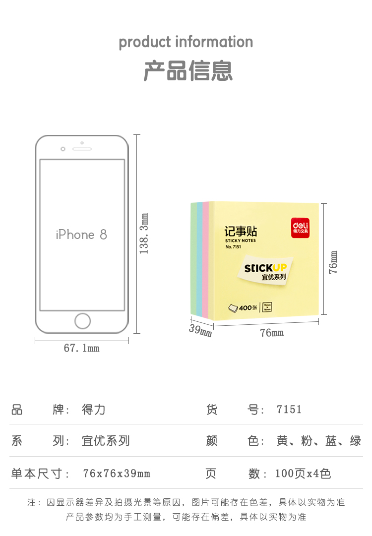 商品名称:得力7151便签纸 彩色便条 记事贴 76*76mm 400张