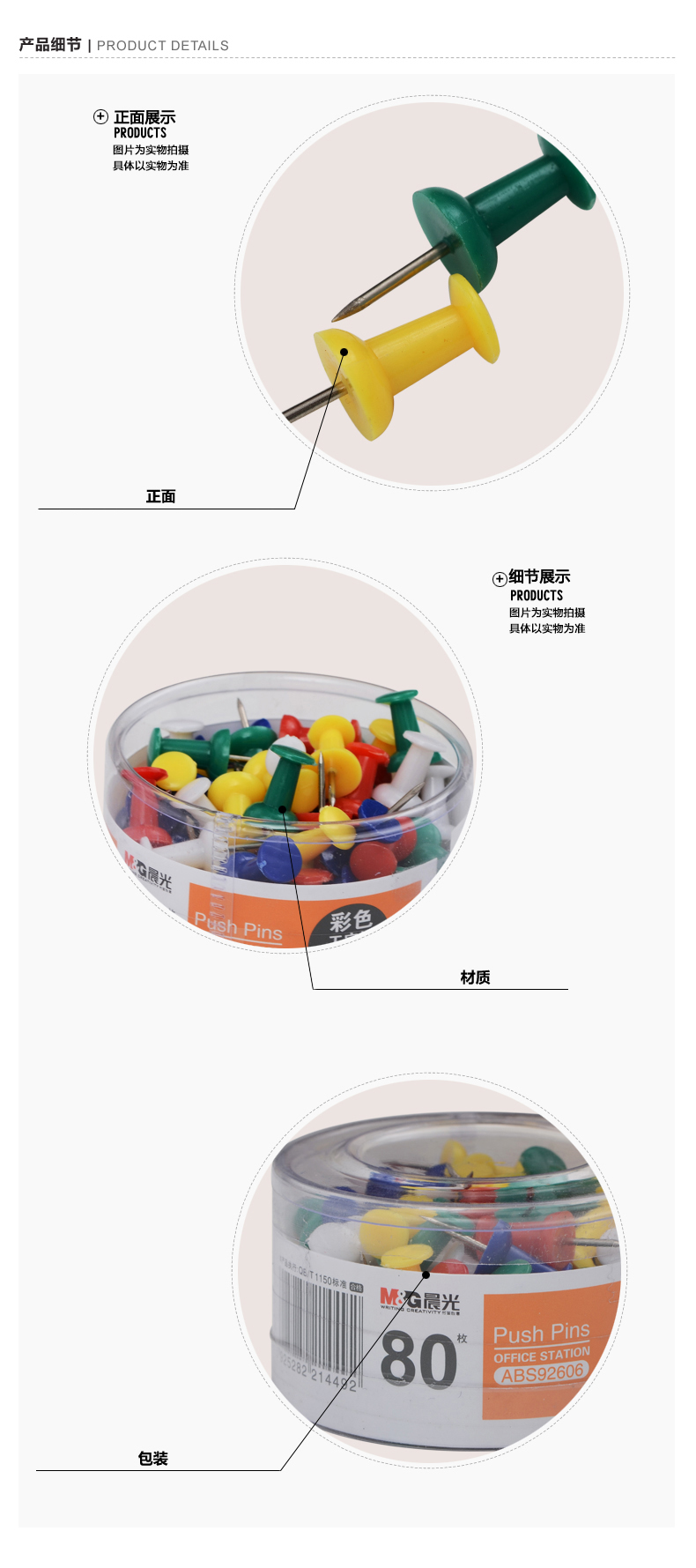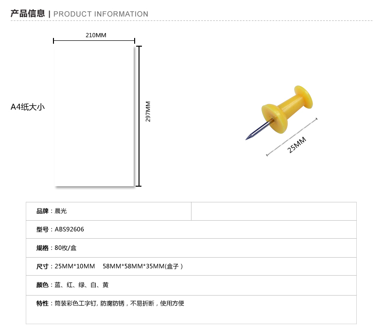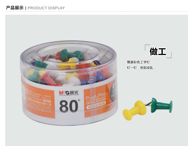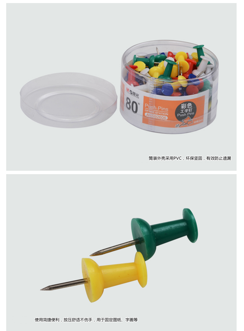 商品名称:晨光办公用彩色工字钉PVC80枚/筒*10 ABS92606