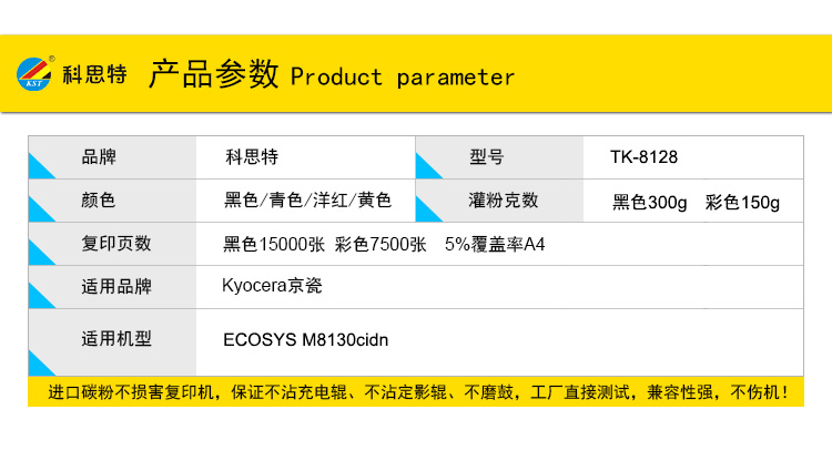商品名称:科思特 TK-8128K(带芯片) 粉盒 适用京瓷ECOSYS M8130cidn 黑色