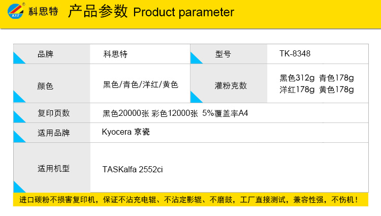 商品名称:科思特 TK-8348(带芯片) 粉盒 适用京瓷TASKalfa 2552ci 黑色