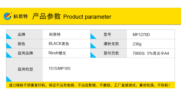 商品名称:科思特 MP1270D 粉盒 适用理光1515/MP165 黑色