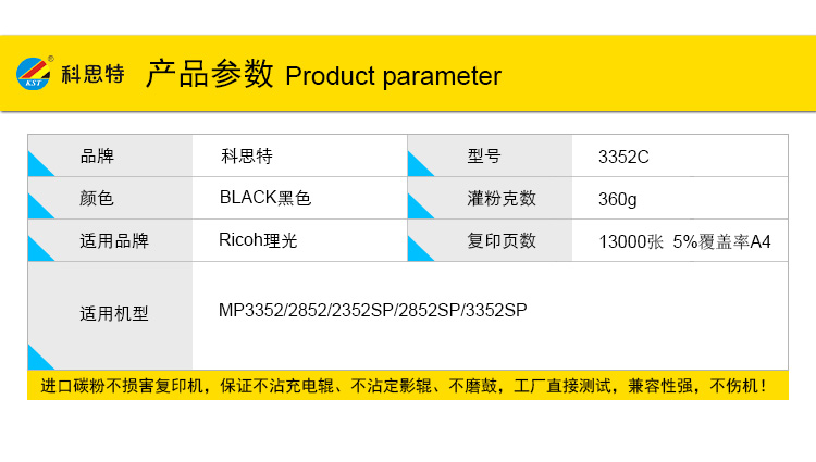 商品名称:科思特 MP3352C 粉盒 适用理光MP3352/2852/2352SP/2852SP/3352SP 黑色
