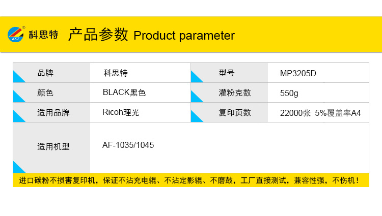 商品名称:科思特 MP3205D 粉盒 适用理光AF-1035/1045 黑色