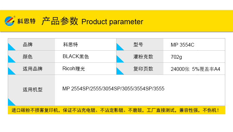 商品名称:科思特 MP3554C 粉盒 适用理光MP 2554SP/3054SP/3554SP/基士得耶2540 黑色