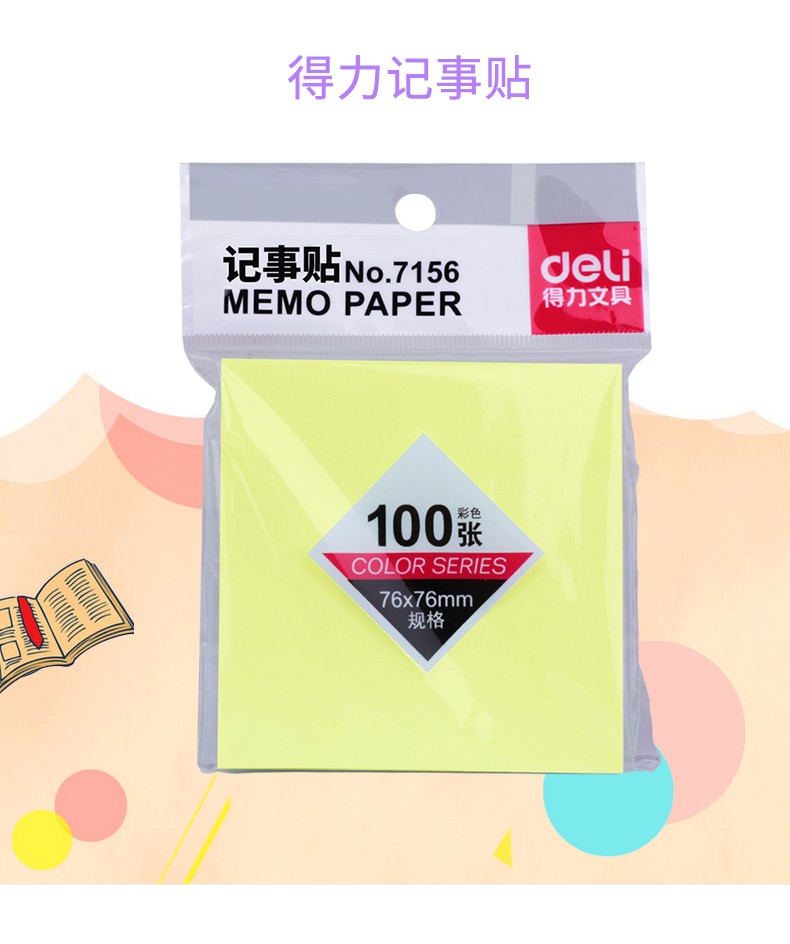 得力(deli) 7156便利贴 标签纸 便签纸 记事贴76*76mm 颜色随机(单位:包)