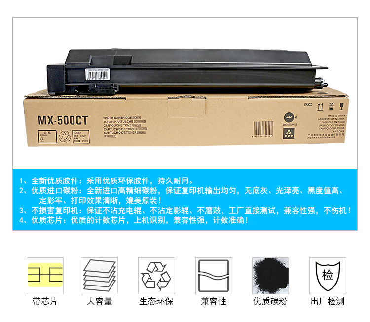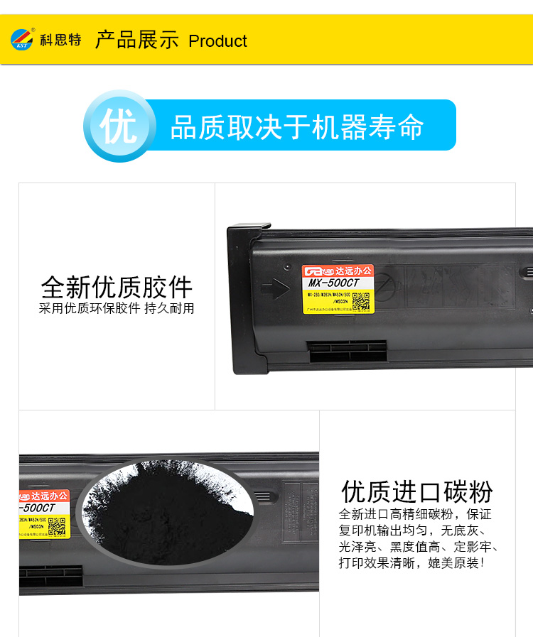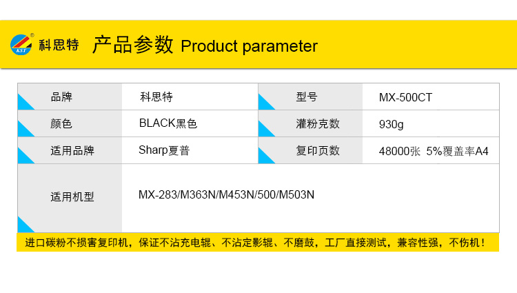 商品名称:科思特 MX-500CT(带芯片) 粉盒 适用夏普 MX-M283/M363N/M453N/M503N/M363U/M453U/M503U 黑色