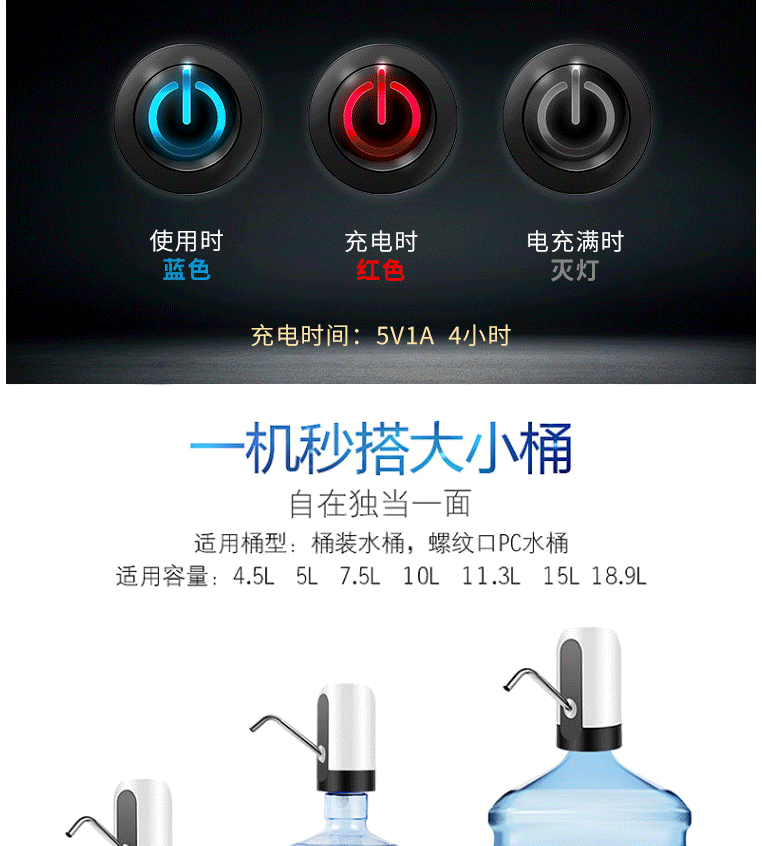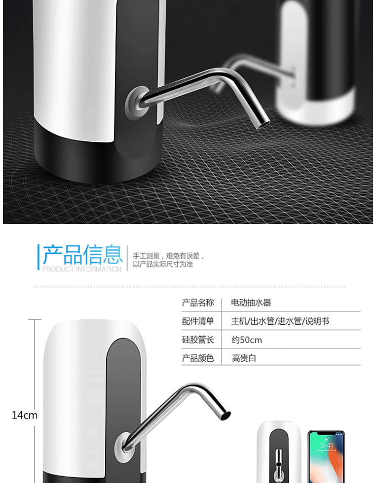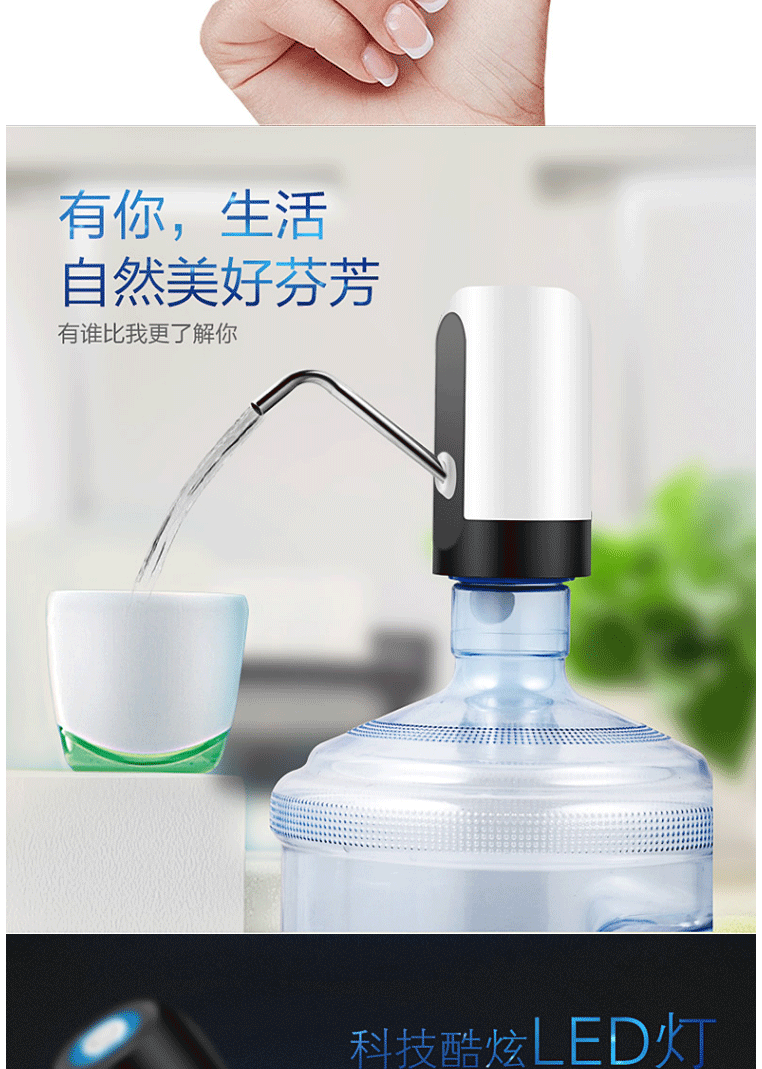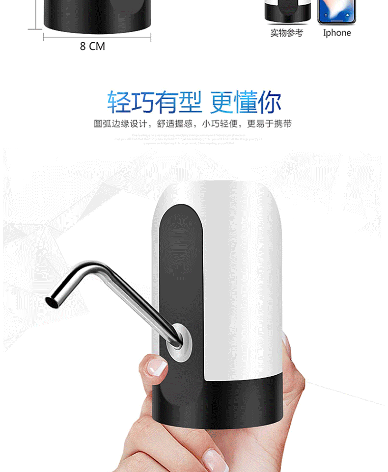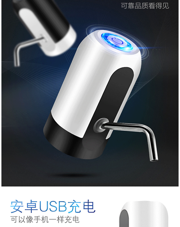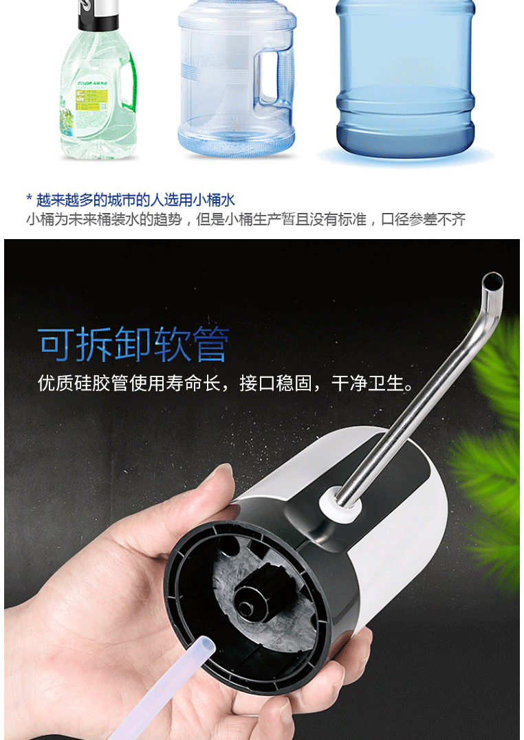 商品名称:十咏 充电式桶装水电动抽水器 压水器 上水器 饮水机泵 吸水器 白色SY012-2