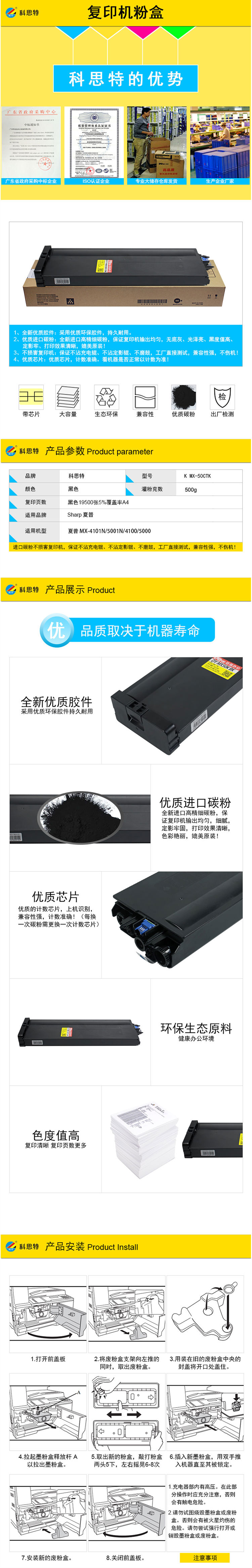 商品名称:科思特 MX-50CTK(带芯片) 粉盒 适用夏普 MX-4128NC/5128NC (AT/NT/GT/JT/FT/XT另配专用芯片) 黑色