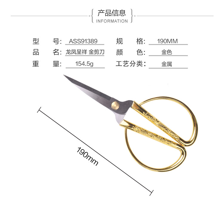 商品名称:晨光190mm龙凤呈祥金剪刀 ASS91389