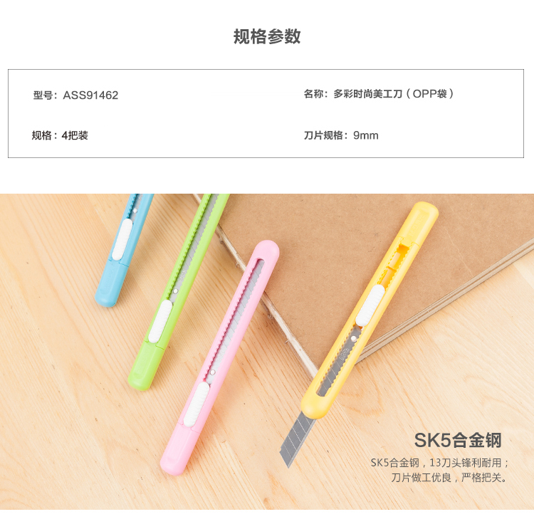 商品名称:晨光美工刀多彩时尚OPP袋装9mm10把装 ASS91462