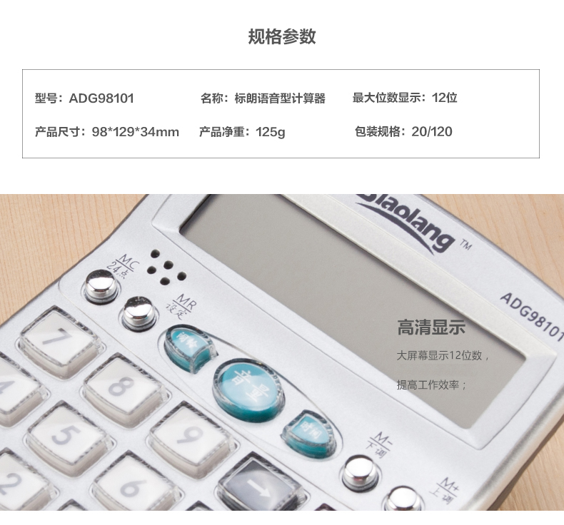 商品名称:晨光计算器语音型ADG98101