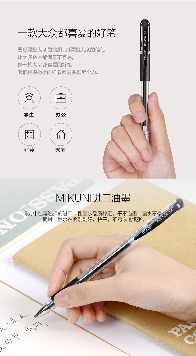 商品名称:得力(deli)6601半针管中性笔 0.5mm签字水笔 黑色 12支/盒