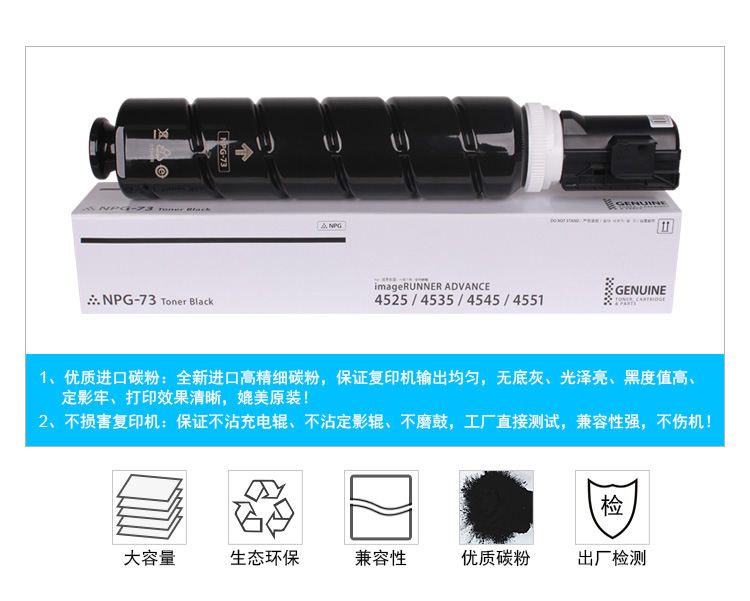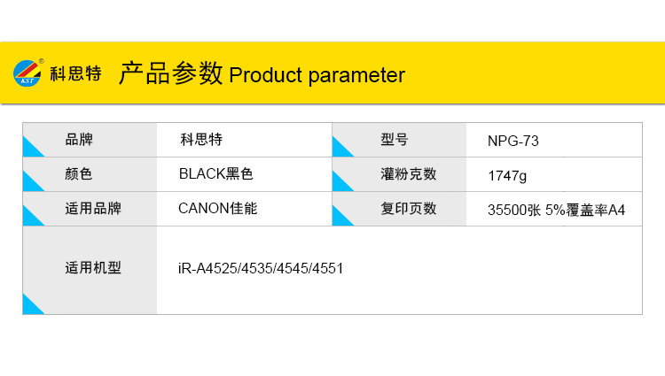商品名称:科思特 NPG-73(带芯片) 粉盒 适用佳能 iR-A4525/4535/4545/4551 黑色