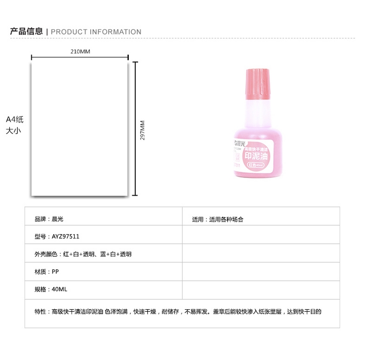 商品名称:晨光高级快干清洁印泥油(蓝)AYZ97511B