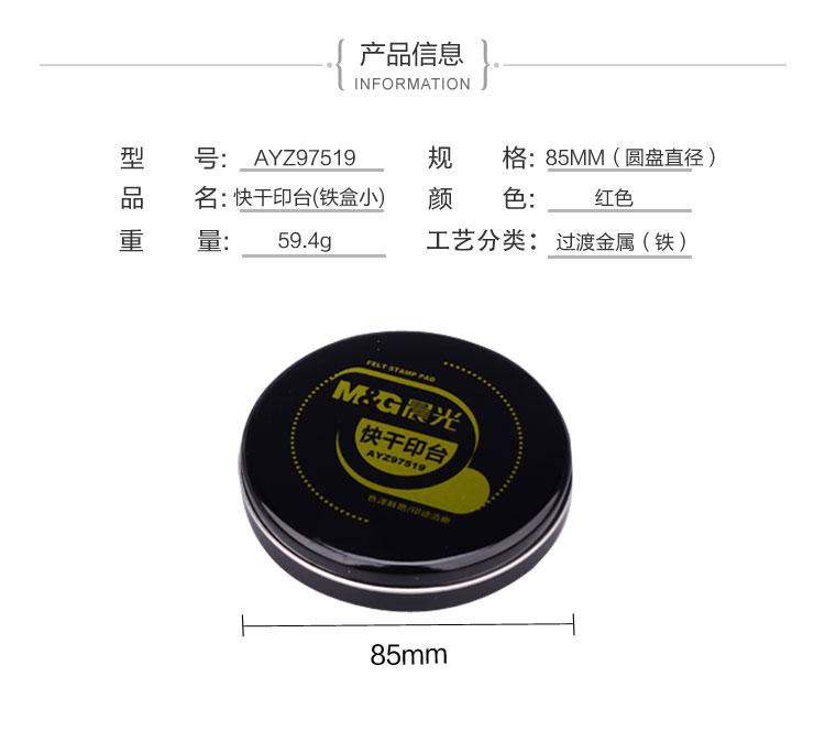 商品名称:晨光快干印台(铁盒小)AYZ97519