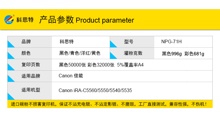 商品名称:科思特 NPG-71HK(带芯片) 粉盒 适用佳能 iRA-C5560/5550/5540/5535 黑色