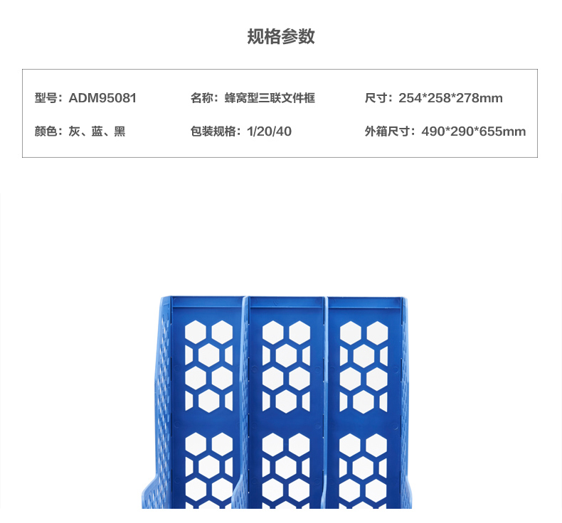 商品名称:晨光蜂窝形三联文件框(蓝色)ADM95081