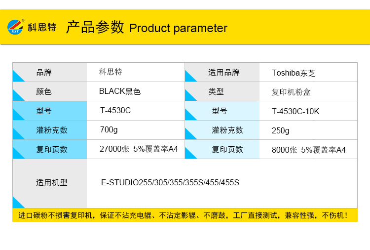 商品名称:科思特 T-4530C-10K(带芯片) 粉盒 适用东芝 E-STUDIO255/305/355/355S/455/455S 黑色