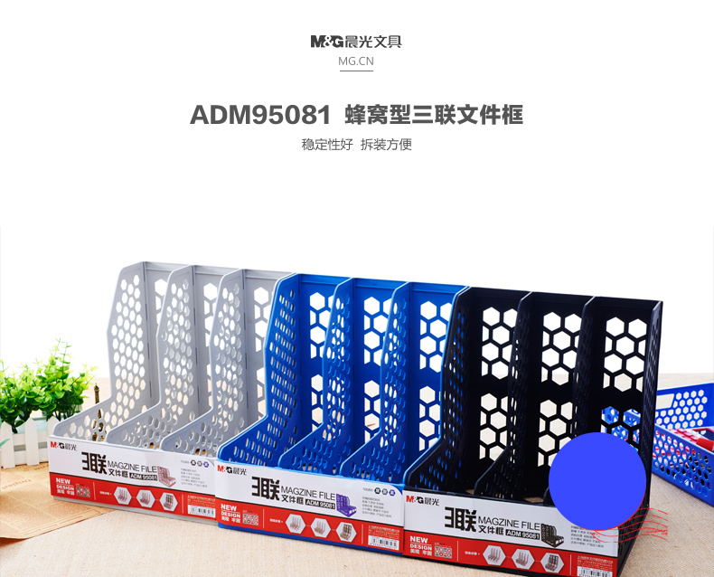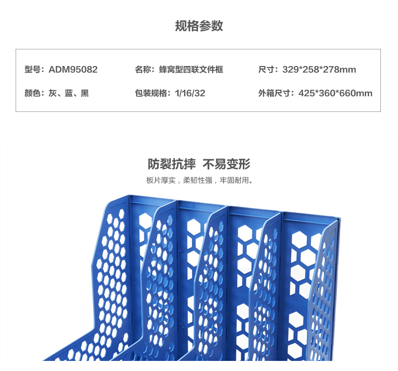 商品名称:晨光蜂窝形四联文件框(蓝色)ADM95082
