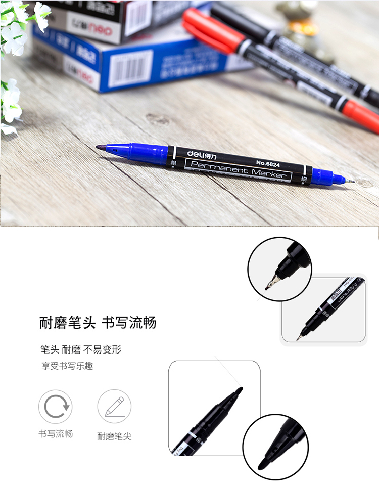 商品名称:得力思达6824小双头记号笔 蓝色 12支/盒