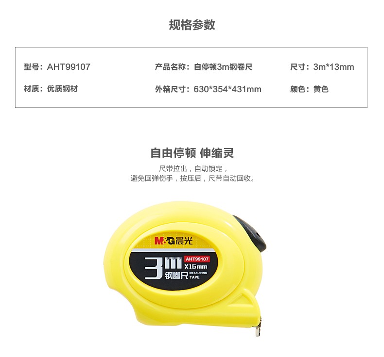 商品名称:晨光自停顿3m钢卷尺AHT99107