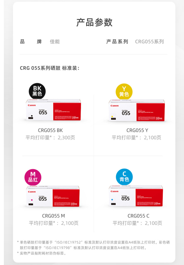 商品名称:佳能(Canon)硒鼓CRG055Y黄色原装(适用MF746Cx/MF742Cdw/LBP664Cx)