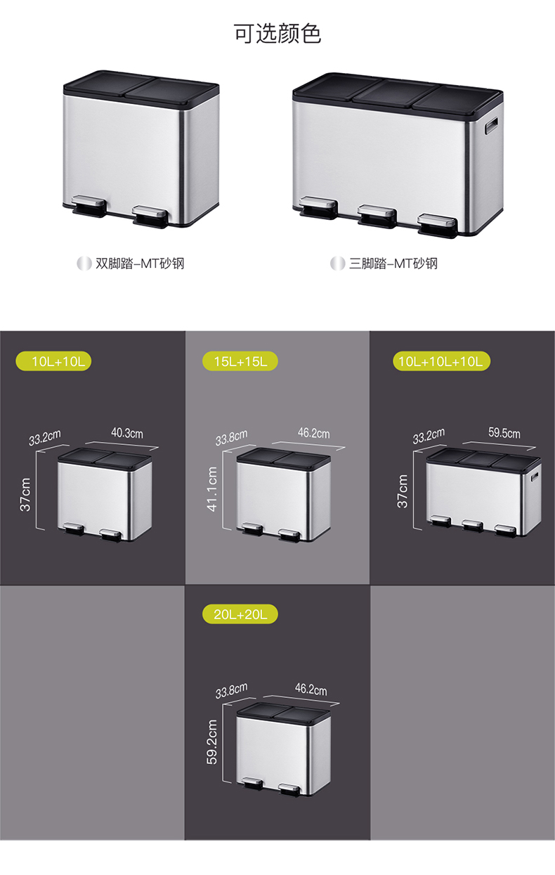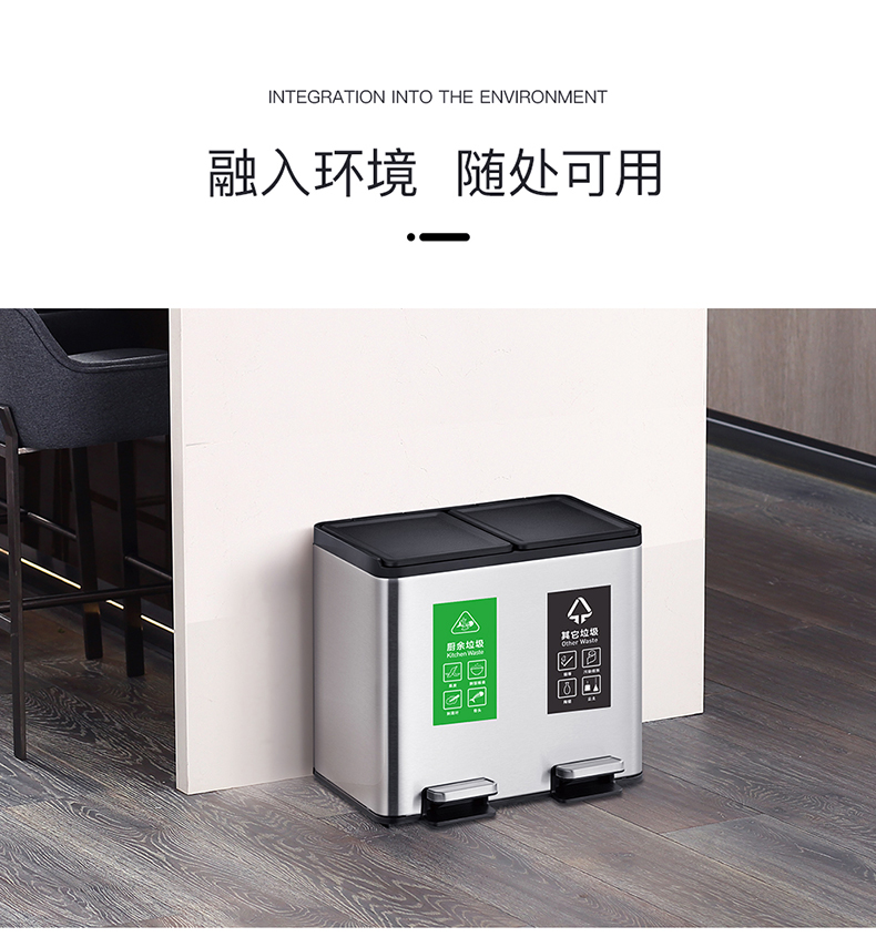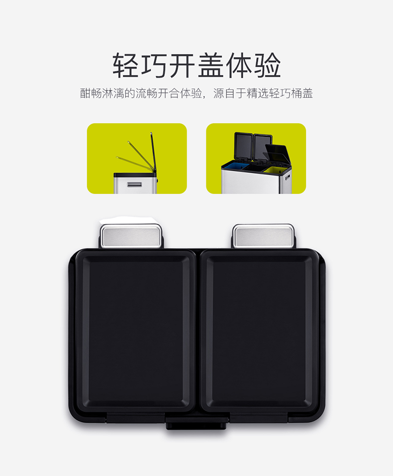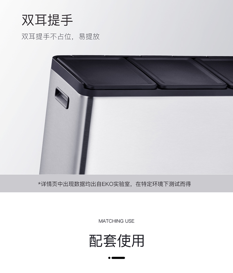 商品名称:EKO分类垃圾桶 干湿分离大号不锈钢独立脚踏式带盖桶 EK8229MT-EK8229MT-20L+20L