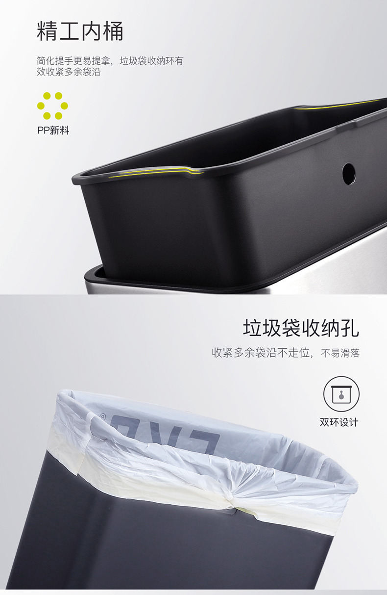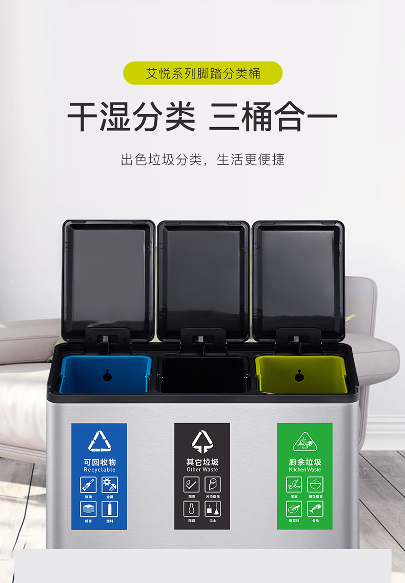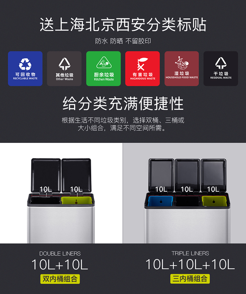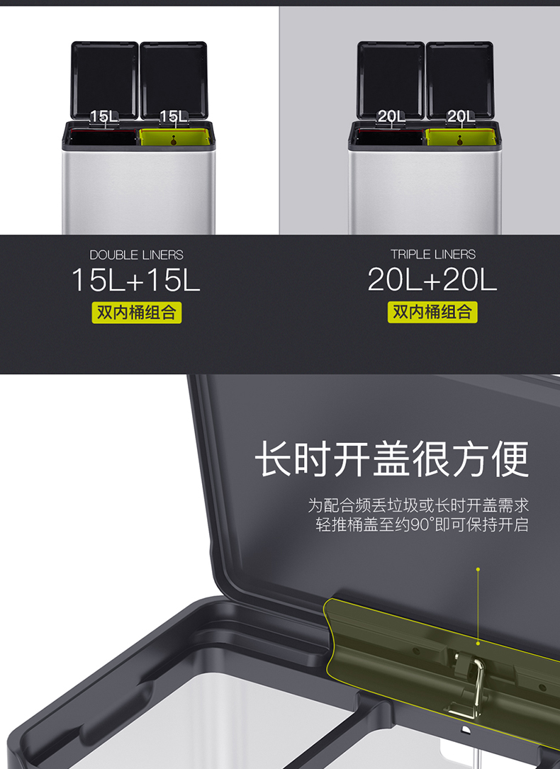 商品名称:EKO分类垃圾桶 干湿分离大号不锈钢独立脚踏式带盖桶 EK8229MT-EK8229MT-20L+20L