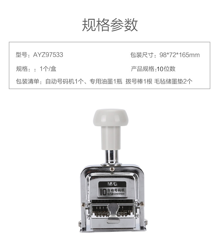 商品名称:晨光10位自动号码机AYZ97533