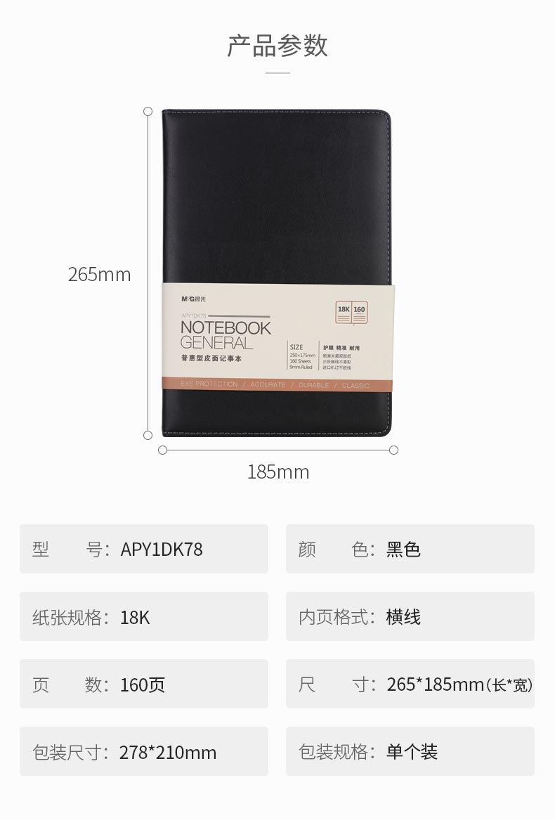 商品名称:晨光18k普惠皮面记事本160页黑APY1DK78A