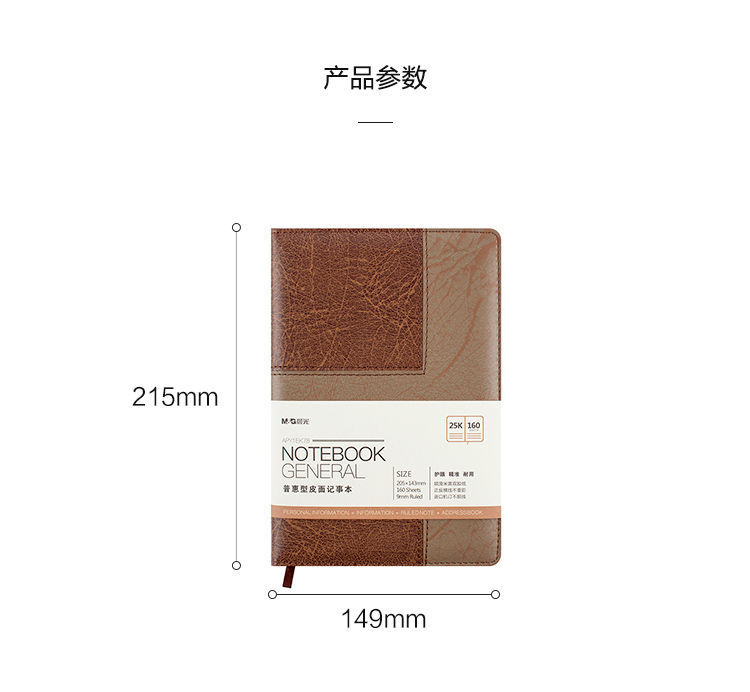 商品名称:晨光25k普惠皮面记事本160页APY1EK78