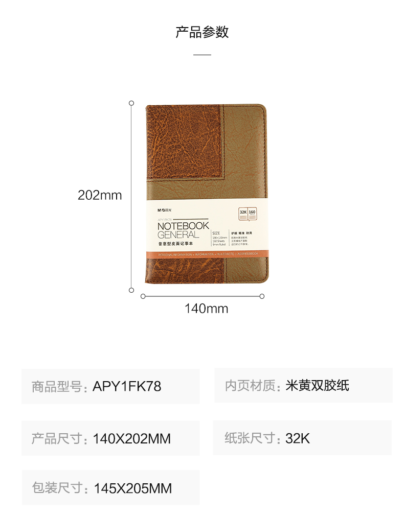 商品名称:晨光32k普惠皮面记事本160页APY1FK78