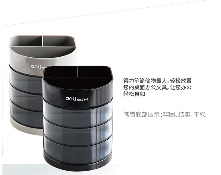 商品名称:得力9147笔筒 三层多功能笔筒 塑料笔筒 黑色