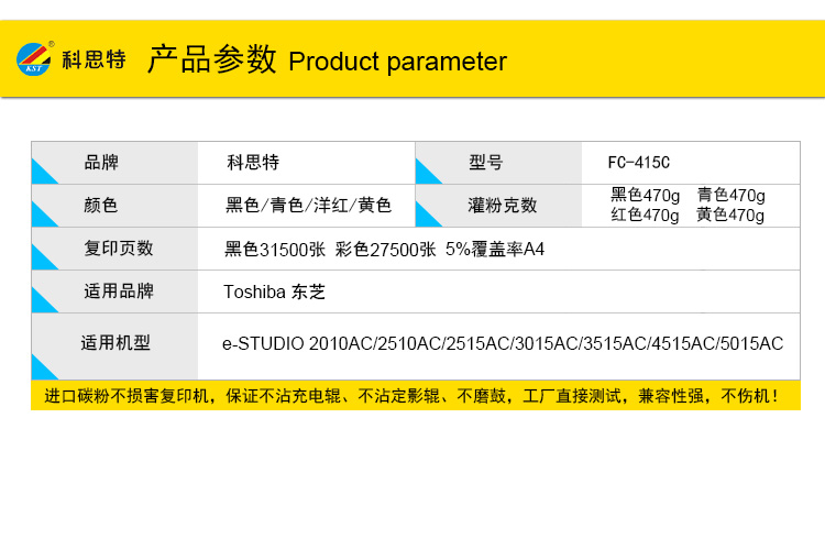 商品名称:科思特 FC-415C-K(带芯片) 粉盒 适用东芝 e-STUDIO 2010AC/2510AC/2515AC/3015AC/3515AC/4515AC/5015AC 黑色