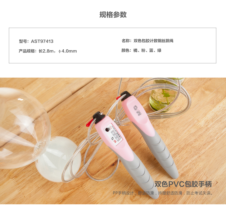 商品名称:晨光双色包胶计数钢丝跳绳AST97413
