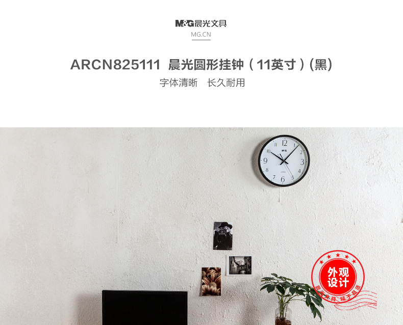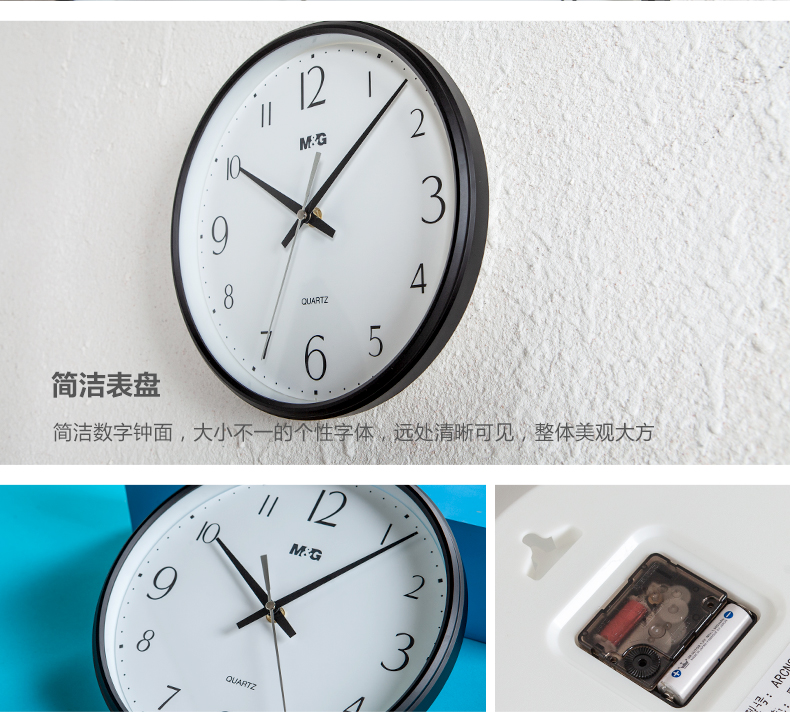 晨光经典圆形挂钟11英寸黑色ARCN8251