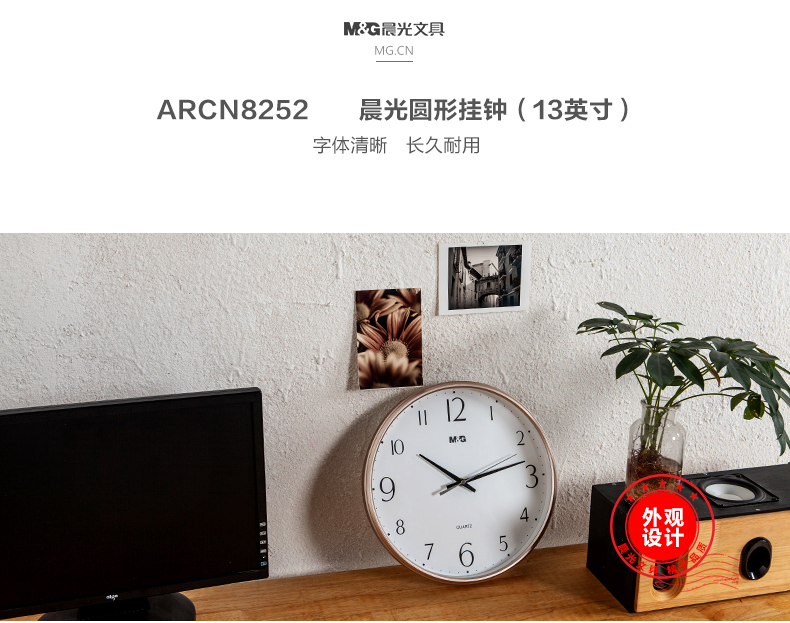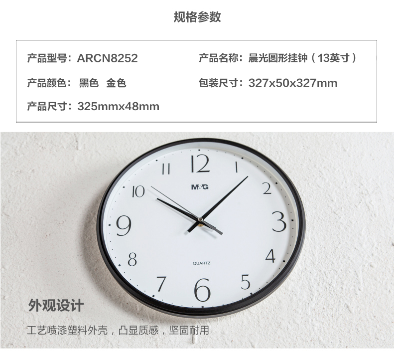 商品名称:晨光经典圆形挂钟13英寸黑色ARCN8252