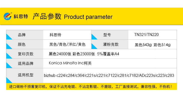 商品名称:科思特 TN321/ADT223 粉盒 适用柯尼卡美能达 bizhub c224/c284/c364/c221s/c221/c7122/c281/c7128/震旦ADc223s/c223/c283 黑色