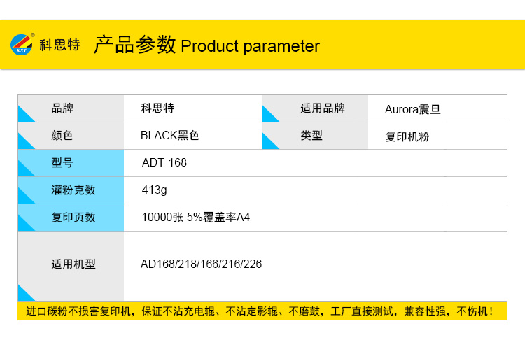 商品名称:科思特 ADT-168 粉盒 适用震旦 AD168/218/166/216/226 黑色