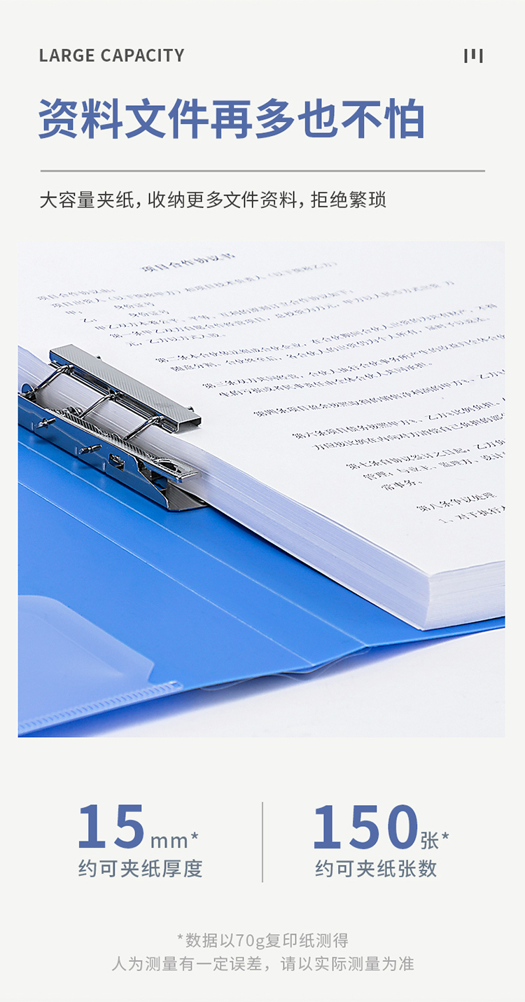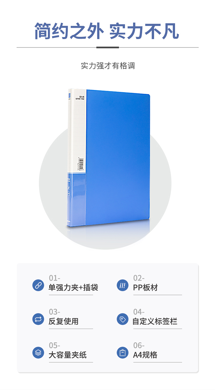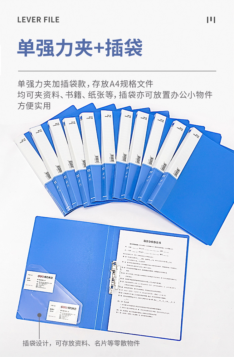 商品名称:得力(deli) 5301金属单强力夹+插页袋硬文件夹 A4 蓝色(单位:个)