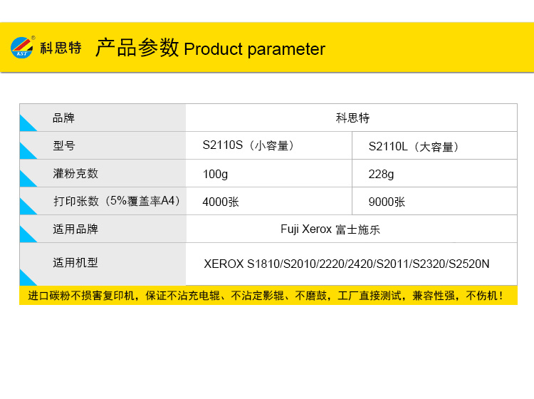 商品名称:科思特 S2110L(专用版) 粉盒 适用富士施乐 DocuCentre S2110N/S2110NDA 黑色