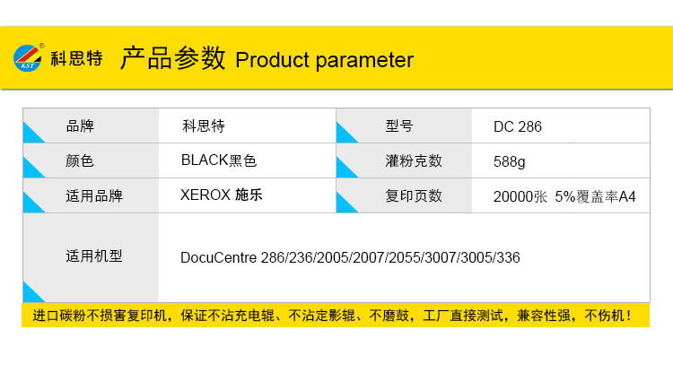 商品名称:科思特 DC-286(带芯片) 粉盒 适用富士施乐 DocuCentre 286/236/2005/2007/2055/3007/3005/336 黑色