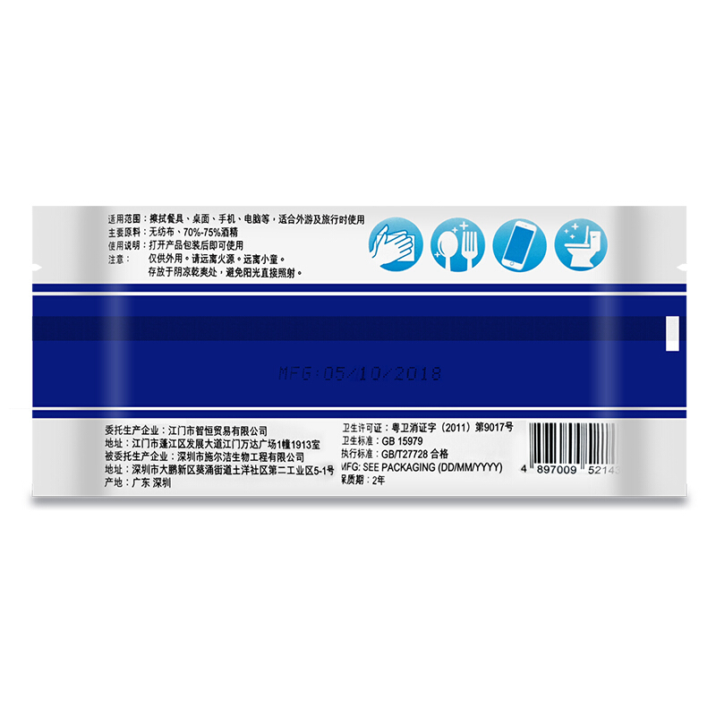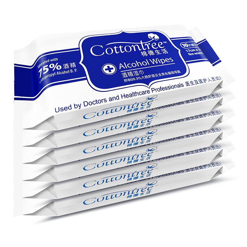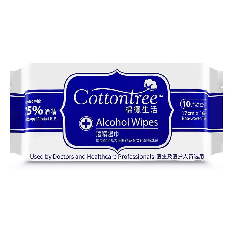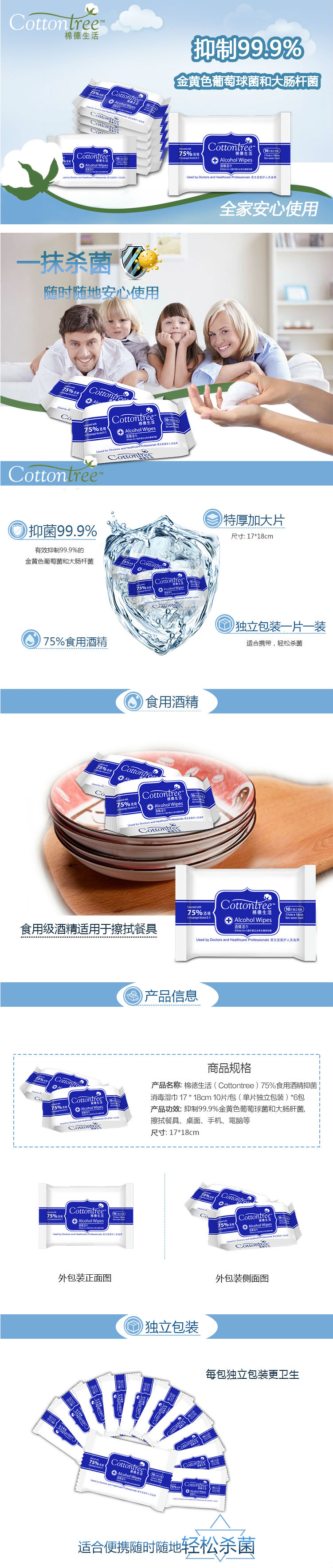 商品名称:棉德生活(Cottontree)75%食用酒精抑菌消毒湿巾 17 * 18cm (单片独立包装) 10片/包*6包
