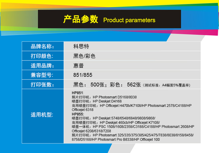 商品名称:科思特 851墨盒 适用惠普Photosmart D5168/8038 Deskjet D4168 Officejet H470b/K7108/HP Photosmart 2578/C4188/HP Officejet 6318 黑色