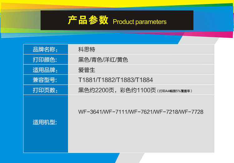 商品名称:科思特 T1881 黑色墨盒 适用爱普生 WF3641 WF7111 WF761 WF7218 WF7728