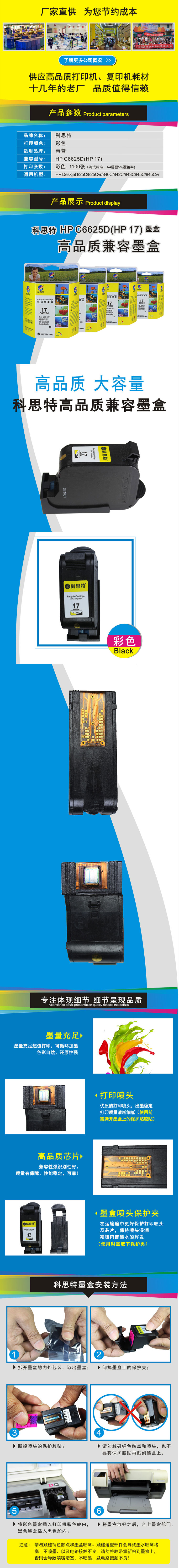 商品名称:科思特 c6625d(17) COLOR 彩色墨盒 适用惠普Deskjet 825C/825CVR/840C/842C/843C/845C/845CVR
